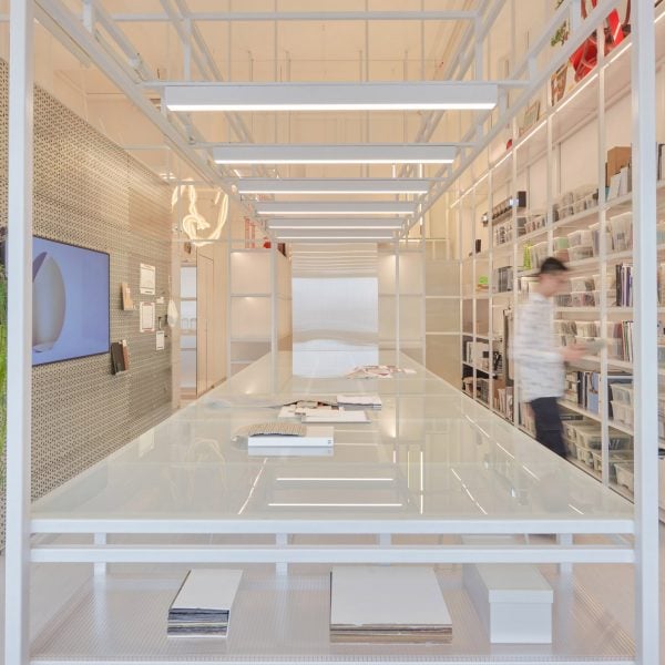 Los estantes de la biblioteca abarcan todo el largo y ancho del estudio, lo que garantiza que los diseñadores siempre tengan fácil acceso a los materiales utilizados para inspirar e inspirar la creatividad.