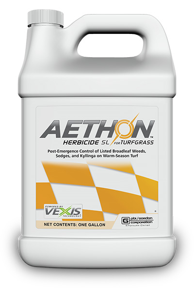 Aethon Herbicide SL de PBI-Gordon Corp. combina los ingredientes activos pirosulfonamida y penoxsulam. Los estudios han demostrado que una sola aplicación puede controlar eficazmente la juncia (juncia amarilla, morada y anual), chiringa (verde, verde falso, cresta de gallo y anual), pasto dólar, involucrata, hiedra, pamplina, plátano Foregrass y varias otras malezas de hoja ancha.