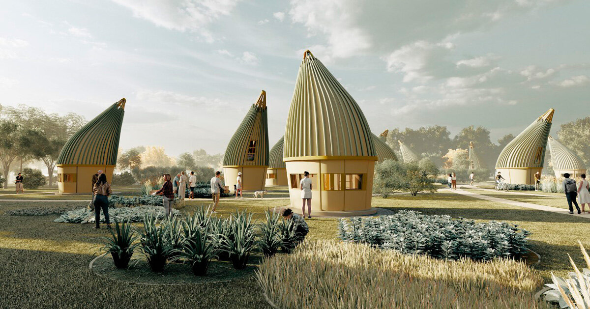 KMJ+A lanza Living Buds, concepto de aldea ecológica En Nicolosi, Siciliacon casas en forma de capullo diseñadas para lograr la autosuficiencia energética y alimentaria. El proyecto esta solucionado cambio climático y desafíos energéticos, combinando arquitectura inspirada en la naturaleza con tecnologías sostenibles avanzadas. este bolsillo como un capullo casas Aerodinámicamente eficiente, maximiza la ventilación natural y la luz natural, reduciendo el consumo de energía y aumentando el confort. El diseño se integra con el paisaje para simbolizar el crecimiento y la regeneración al tiempo que promueve un entorno de vida ecológico.