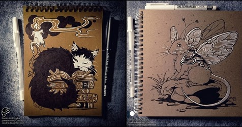 Dibujo de fantasía a tinta y lápiz. bloc de dibujo.