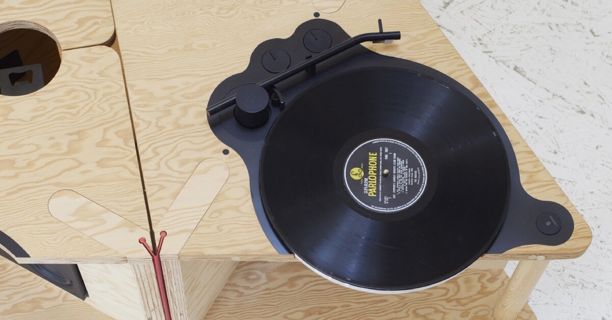 Este año, DHaus presentará los dos nuevos prototipos en la Semana del Diseño de París, que tendrá lugar del 5 al 14 de septiembre de 2024. —Tocadiscos de vinilo integrado, altavoz Bluetooth, cargador inalámbrico, despertador y abridor de botellas. Deco GREEN GOBLIN tiene manchas en la parte superior y es el primer experimento del equipo que utiliza materiales plásticos reciclados hechos de Surface Matter.