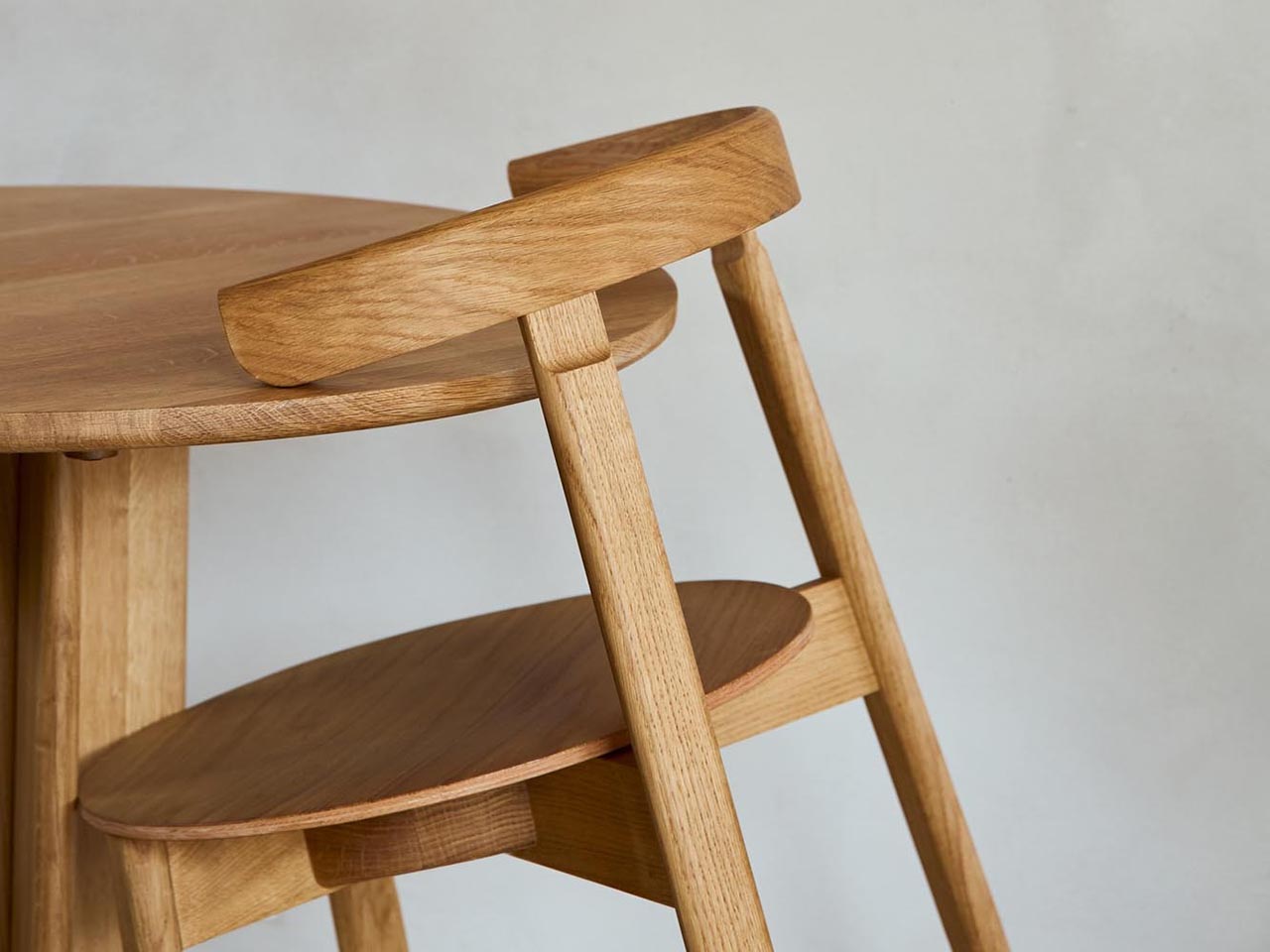 «Con la silla Lunar, mi objetivo era crear una silla que fuera liviana y abrazadora. Mi objetivo era hacer una silla que fomentara diferentes posturas para sentarse, en lugar de encerrar al usuario en una sola posición», dijo Herman. “El característico respaldo redondeado y los reposabrazos integrados de la silla están hechos de una sola pieza de madera maciza. La forma (de los reposabrazos) garantiza una comodidad óptima, brinda apoyo a los codos y la zona lumbar del usuario y permite una variedad de posiciones para sentarse.