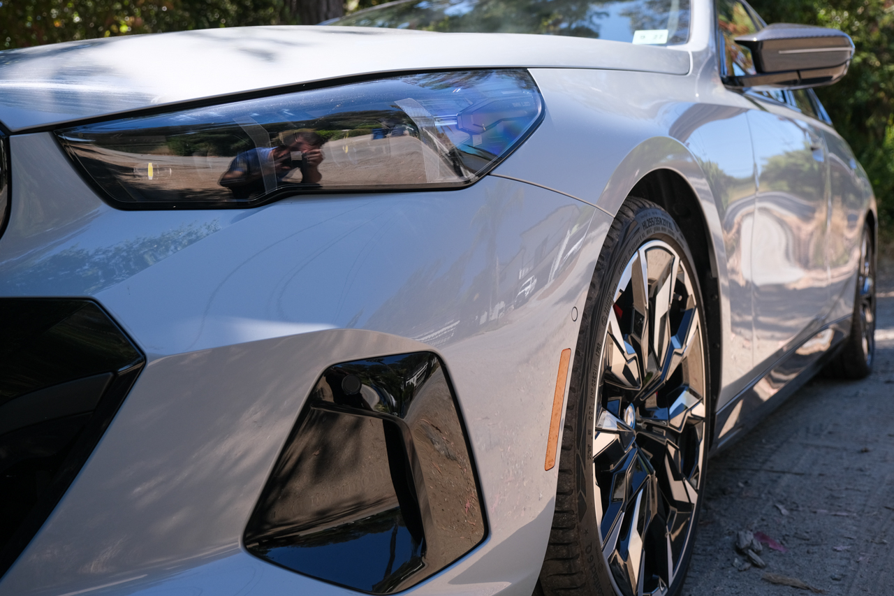 El i5 que conduje estaba pintado en el impresionante gris Brooklyn metalizado, un acabado que posiblemente sea mi color BMW favorito. No es tan vibrante como algunos colores azules brillantes de BMW, pero conserva la sensación general de un BMW blanco y al mismo tiempo parece un poco más moderno.
