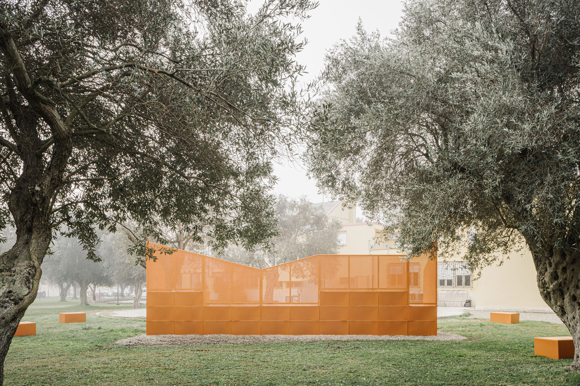 Descripción textual proporcionada por el arquitecto. Atobiu, que significa «encuentro» en sardo, es una instalación urbana situada en el parque de S’Olivariu Canción (California). El proyecto, impulsado por la autoridad local, tiene como objetivo crear un teatro al aire libre y rediseñar la plaza detrás del ayuntamiento, transformándola en un vibrante centro social para la comunidad de la UTA. El espacio está diseñado para que todos lo disfruten en diferentes momentos del día y para fomentar un sentido de comunidad y unión.