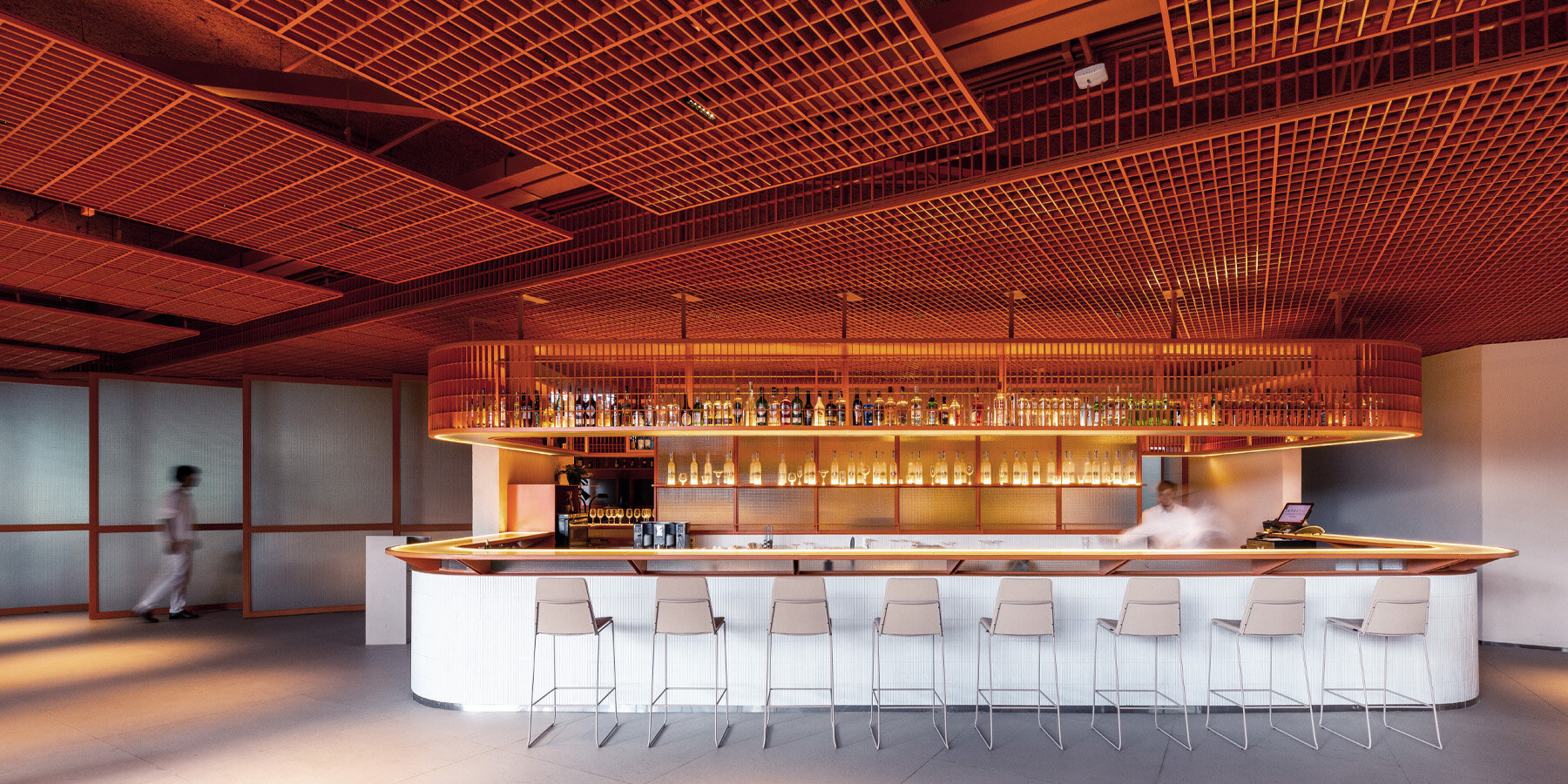 un vibrante techo de rejilla metálica de bloco arquitetos eleva el hotel almenate hilton