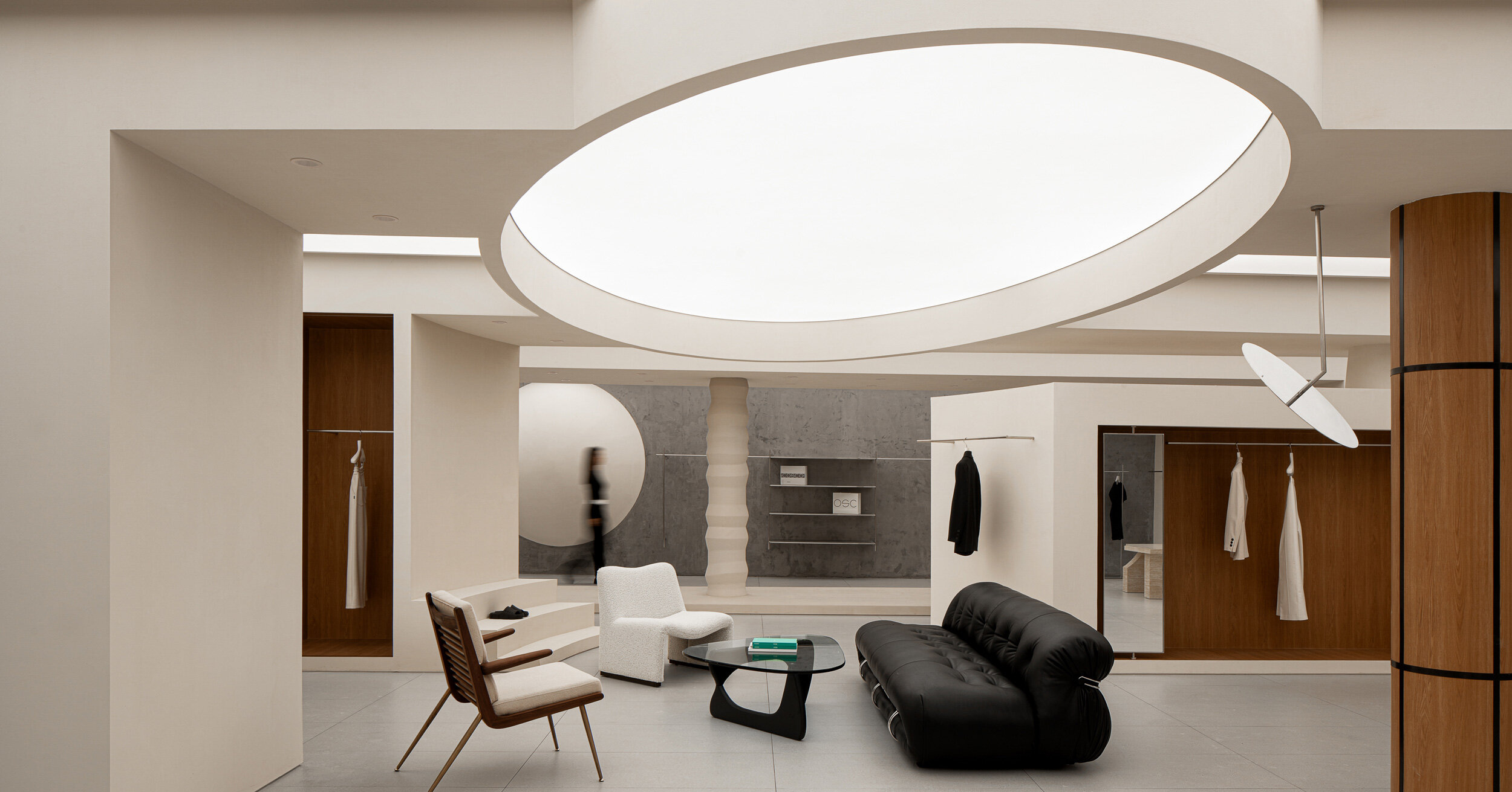 Los elementos ovalados aportan calidez a la sala de estar de la boutique OSC de xframe studio en China