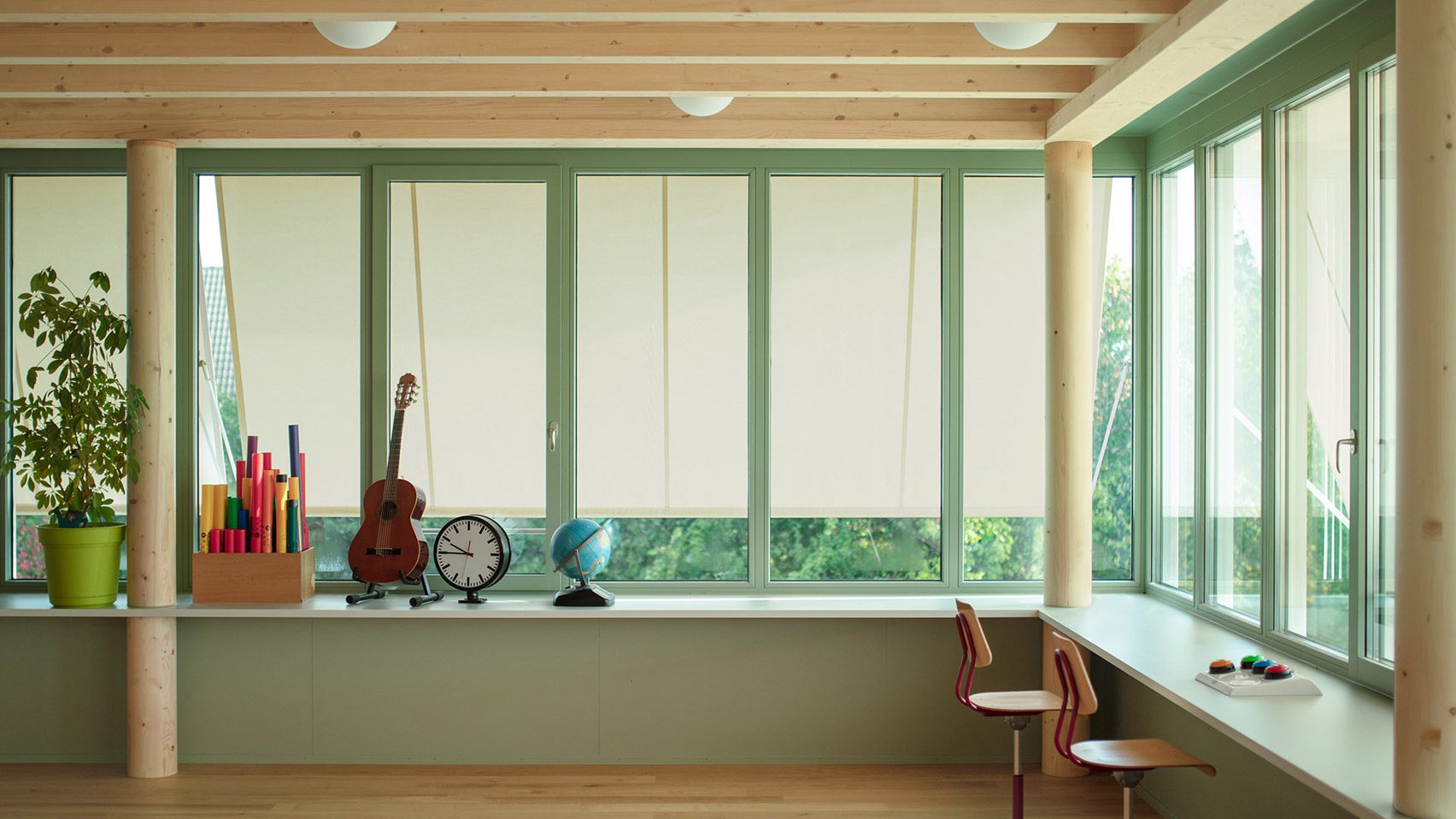«La estructura de soporte de madera del techo crea una atmósfera cálida en las aulas y alberga luz en los espacios intermedios», dijo Haller.