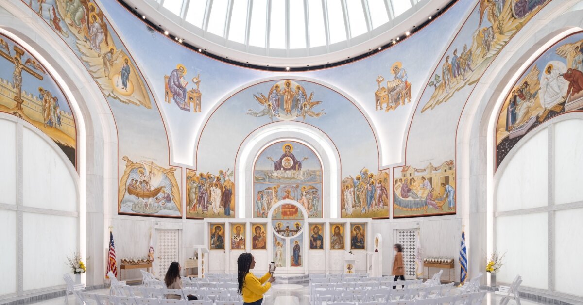 La estructura abovedada de mármol blanco refleja el diseño bizantino tradicional de Manhattan.