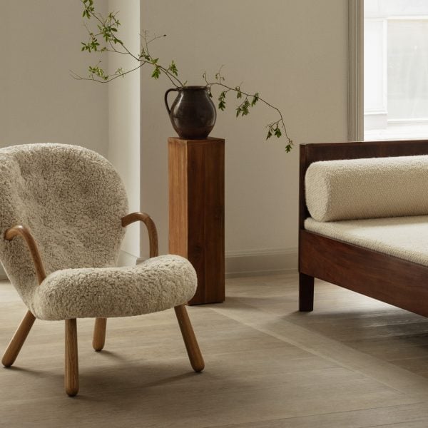 Ahora, ochenta años después de la creación de la silla, Dagmar, bajo licencia de la familia Madsen, produce una nueva versión de la silla Clam, tapizada con piel de oveja o tejidos personalizados.