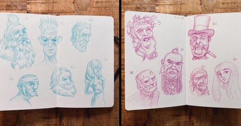 Están incluidos en un cuaderno de bocetos con expresiones a lápiz de diferentes colores.
