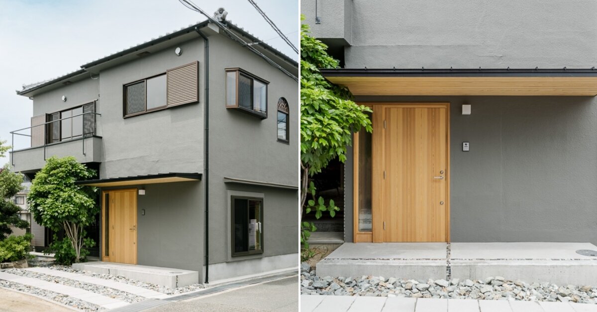 La renovación de Re:Teramoto de Ikki Matsumura comenzó con el desmantelamiento del interior, dejando al descubierto la estructura existente. Se añadió madera contrachapada a las paredes perimetrales y al techo para proporcionar refuerzo sísmico a la estructura existente y se aplicó cuidadosamente a la superficie de acabado final. Cuando los residentes ingresan al nuevo vestíbulo de entrada, este presenta un techo abierto de doble altura y una pared revestida con azulejos grises justo enfrente. Este elemento audaz sirve como telón de fondo para la escalera, creando un flujo hacia el segundo piso.