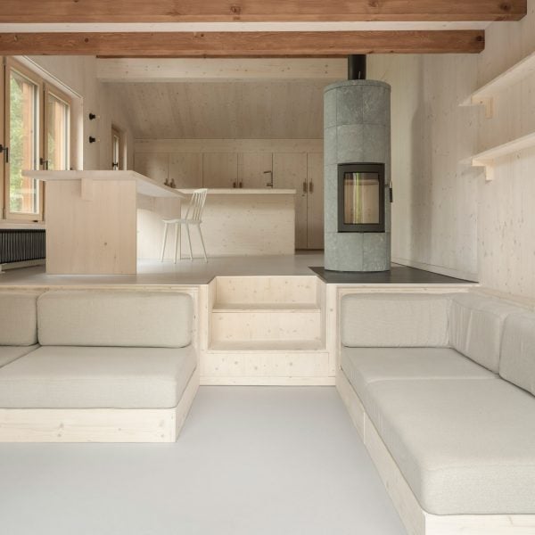 pálido de madera Características del acabado interno Cabaña de montaña Perfect Day House actualizada por el estudio suizo Giona Bierens de Haan Architectures.