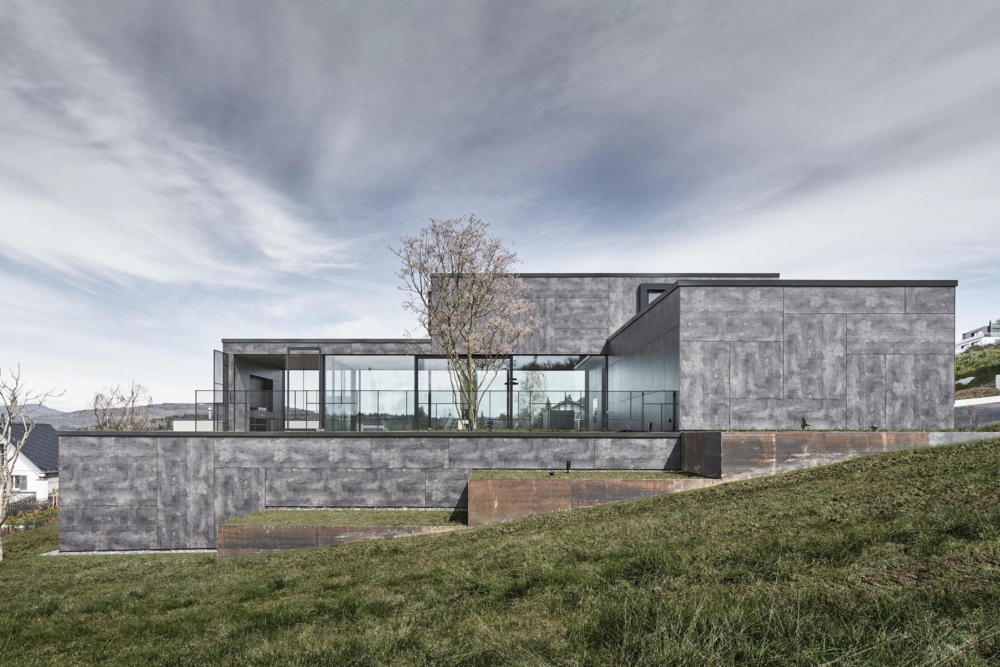 Descripción textual proporcionada por el arquitecto. Ubicado en una hermosa zona residencial dentro del estado. algoviase ha construido una torre residencial con impresionantes vistas. La parcela tiene una orientación norte y captura maravillosas vistas panorámicas de las Montañas Jurásicas.