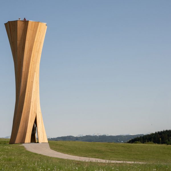 Este enfoque permitió que la forma retorcida de la torre se hiciera con sólo 12 paneles delgados de madera, eliminando la necesidad de maquinaria pesada. El método es Presentado por primera vez en la Torre Urbach, previamente terminada por ICD e ITKE.