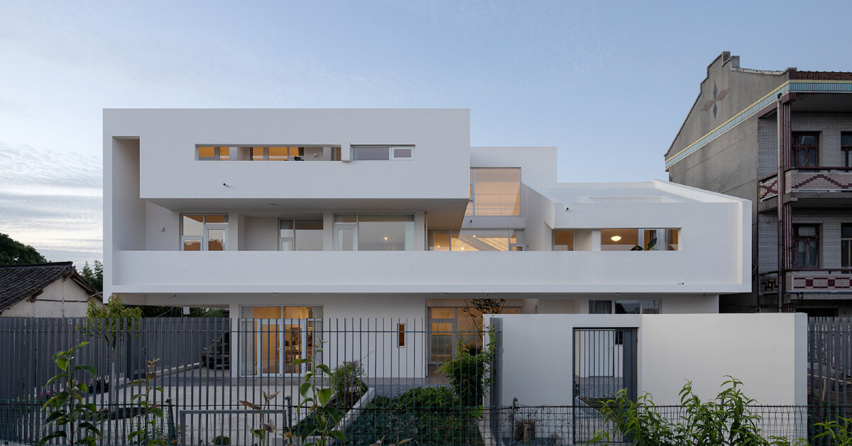 El propietario espera demoler la antigua casa y construir una nueva para que las dos familias puedan regresar al campo de Pudong y pasar los fines de semana y vacaciones con sus abuelos. Como hogar familiar extendido, los espacios abiertos compartidos se integran para crear encuentros planificados y fortuitos para los residentes. este equipo de diseño En Atelier LI, los principios modernistas han ido más allá, imaginando una estructura geométrica blanca sobre un fondo rural que contrasta con su entorno.