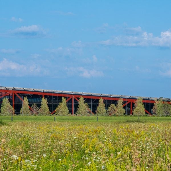 Se encuentra en una parcela de terreno justo al lado de una importante carretera interestatal que conecta Milwaukee, Wisconsin y Chicago, Illinois.