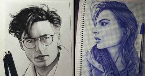 Dibujo de retrato con bolígrafo y lápiz.