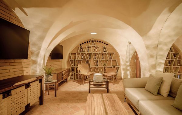 Después de dos horas viendo una película (o dos horas de compras en Uniqlo), ¿qué mejor manera de atraer gente que ir a un bar atractivo? La pieza central de Pippal, con su pared trasera tridimensional en forma de diamante, es innegablemente llamativa y su forma enfoca con éxito la atención en los niveles de botellas de bebidas espirituosas. Para realizar el diseño, Studio BANAA recurrió a varios precedentes en la India. Consideró las esquinas afiladas y las geometrías curvas que se encuentran en los textiles y la arquitectura de la India como materiales de origen y luego las alteró. “La forma espacial ha evolucionado hacia una forma triangular ondulada”, dijo Nastaran Mousavi, cofundador y director de diseño de Studio BANAA. “El motivo era ver la pieza como una versión evolucionada del arco, en lugar de una réplica exacta. ”