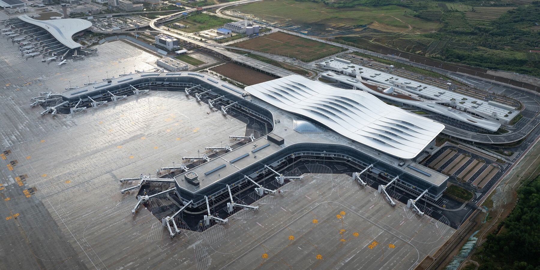 El diseño de la terminal de Aedas para el aeropuerto Yantai Penglai se hace eco de las montañas cercanas