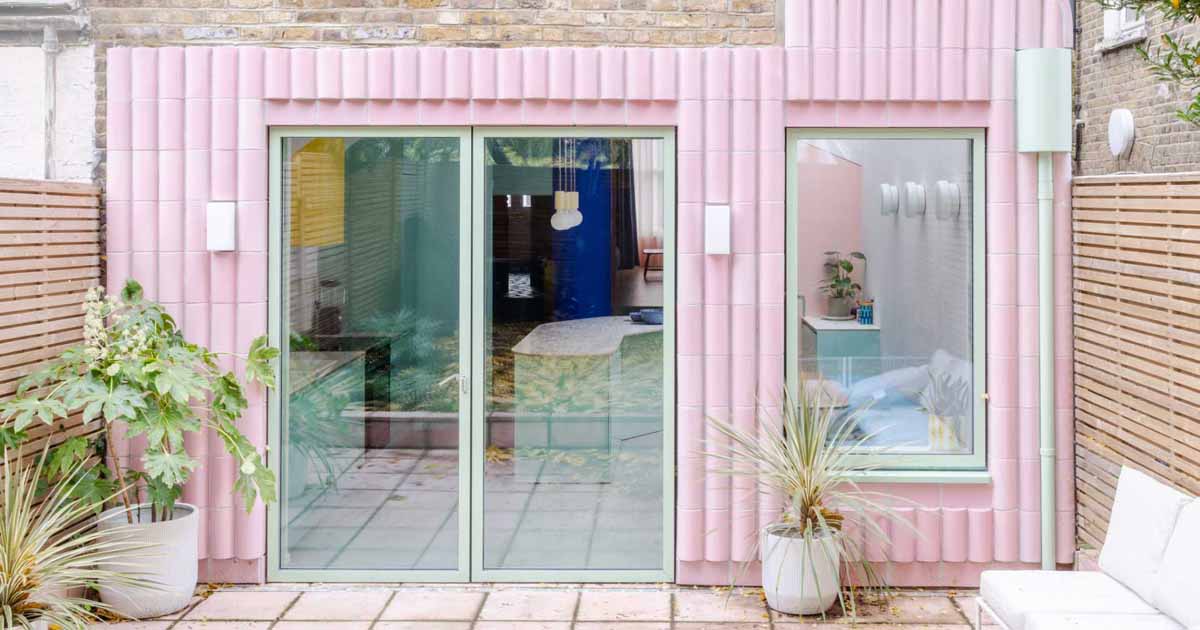 Oficina S&M Arquitecto compartió fotos de una extensión residencial que diseñaron para una casa victoriana en el norte de Londres, que incluía azulejos esmaltados de color rosa.