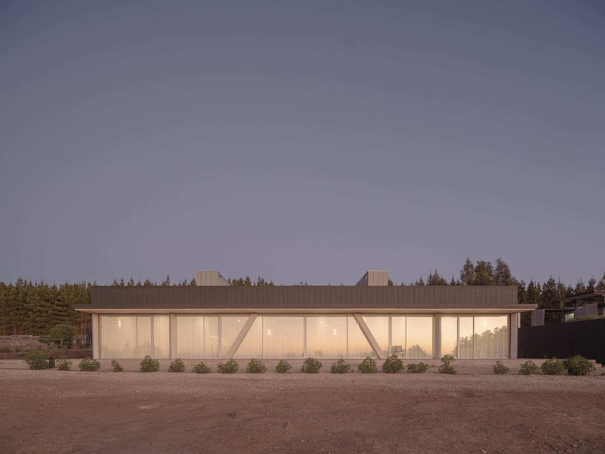 La casa está ubicada en un terreno rectangular con terreno suave. Para poder disfrutar de la magnífica vista panorámica del paisaje, se decidió colocar todas las habitaciones interiores orientadas al oeste para preservar al máximo las vistas del Océano Pacífico. El proyecto se organiza mediante la adición de cinco trapecios rectangulares, yuxtapuestos entre sí mediante formas geométricas claras, respondiendo a la función solicitada de la manera más efectiva.