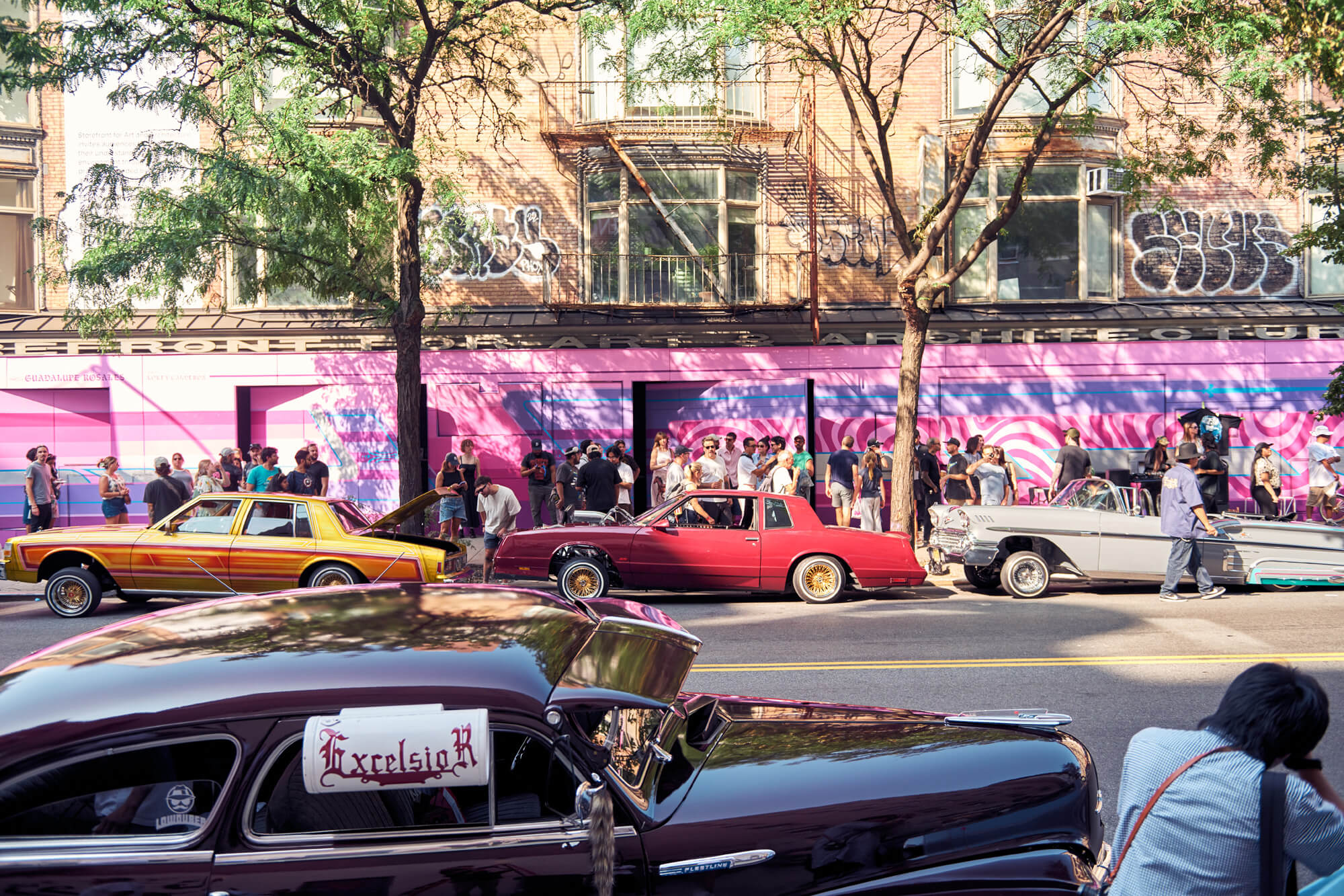 acostadoes una obra de arte pública a largo plazo de Storefront for Art and Architecture que desafía la criminalización del arte tradicional chicanx mediante la construcción de un espacio para recontextualizar, reciclar, celebrar y apreciar formas de arte multigeneracionales.