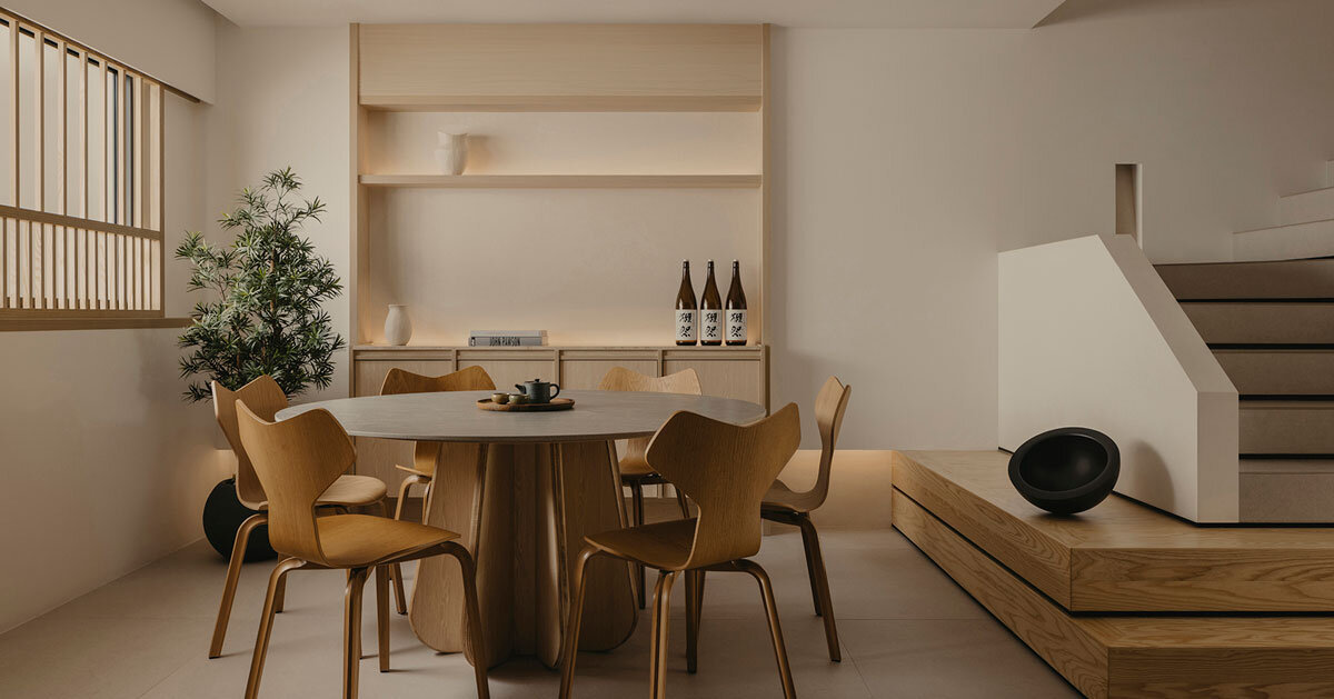Las áreas minimalistas dentro del apartamento están diseñadas para socializar y reunirse.