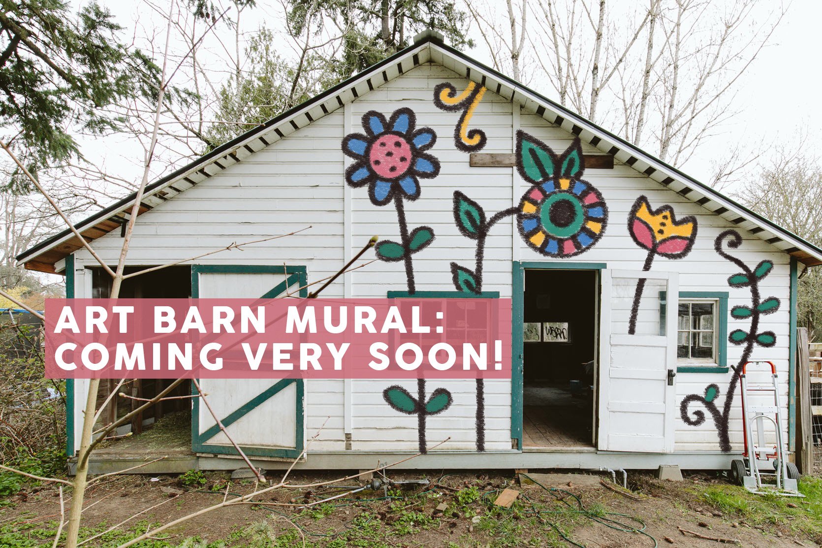 A menudo tengo que priorizar y ejecutar proyectos/salas que tienen consecuencias u obligaciones más profesionales (es decir, dirigir un «negocio»). Pero me mantengo firme en este proyecto y no lo quitaré de mi calendario durante todo el verano, sin importar lo lleno que esté este otoño. Me hago eco de lo que muchos creadores de contenido han dicho en el pasado: «No pasaré otro invierno sin un mural floral en este granero de alpacas, cerdos y arte». Agua, comida, refugio, murales de flores. ¿Correcto? No tiene ningún otro propósito real que el entusiasmo personal, la alegría, la experimentación y la colaboración creativa a la antigua usanza (por eso me metí en esto en primer lugar). Quiero que mis ojos vean flores durante todo el invierno, quiero pasar unos días con artistas que admiro, Rachel del puente Banyan Tree Fama, pintar graneros, ensuciarnos y hablar de cómo nos convertimos en exmormones, mamás, presentadoras de televisión y creadoras de contenido de diseño.