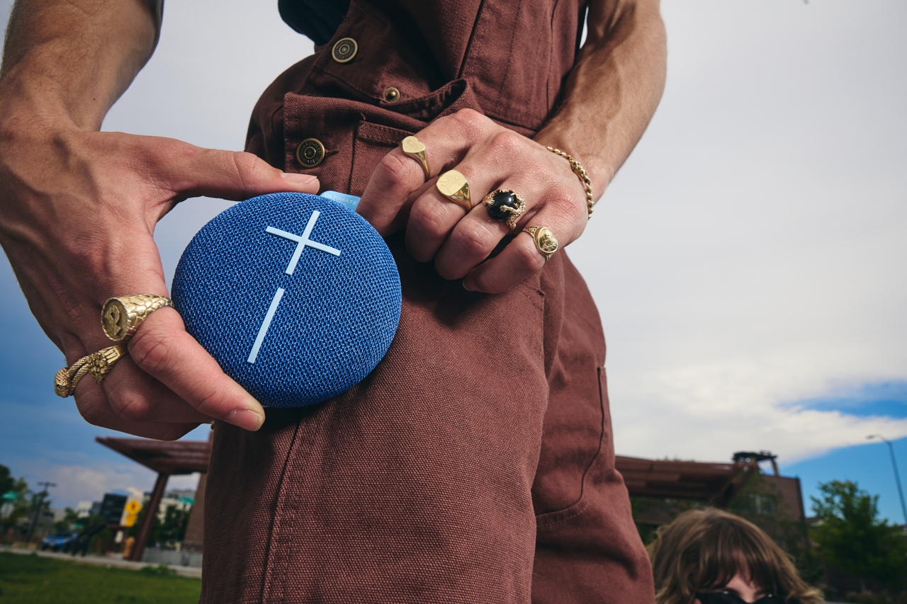 Pero según Ultimate Ears, una de las mejores cosas de este altavoz es que puedes usarlo. Por ejemplo, hay una correa integrada en el altavoz que puede utilizar para sujetar el altavoz a la ropa o a una mochila. Esta es una gran idea y convierte al altavoz en una opción sólida para actividades como el senderismo. Además de ser portátil, también es colorido y está disponible en cuatro colores diferentes. El altavoz está fabricado 100% con tejido de poliéster reciclado posconsumo y al menos 40% de plástico reciclado posconsumo. También está diseñado para la aventura, ofreciendo una clasificación de impermeabilidad IP67 y un diseño a prueba de caídas, y Ultimate Ears dice que el altavoz puede soportar caídas de hasta 1,2 metros.