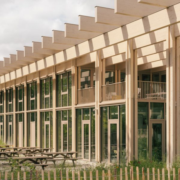 estudio francés taller de puentes Completó un artículo edificio de oficinas Para el equipo operativo del parque de La Villette Paríspresenta un marco de madera enrejado expuesto diseñado para darle a su interior una sensación de bosque.