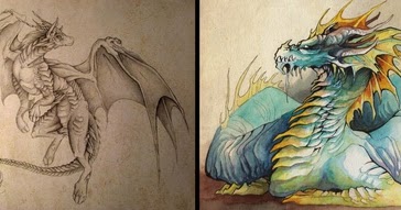 Me gustan sus personalidades. Es mucha imaginación para que a un dragón se le ocurran tantas perspectivas diferentes. Además, fueron pintados utilizando tres medios diferentes: lápiz de grafito, pintura de acuarela y tinta de bolígrafo.