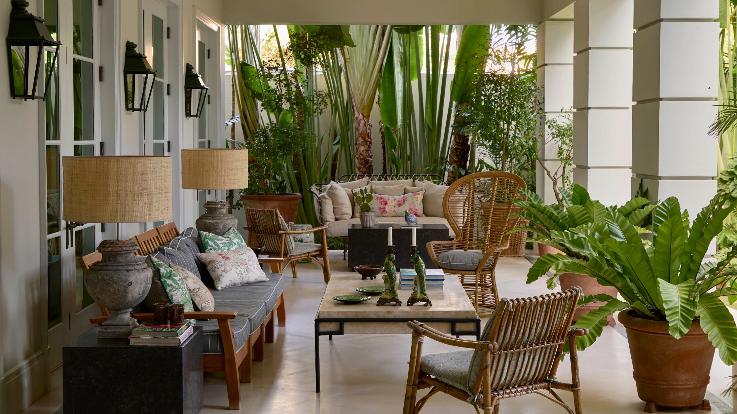 Por ejemplo, se elevó todo el edificio para evitar inundaciones y se instalaron ventanas resistentes del piso al techo para resistir fuertes lluvias y vientos. Todas las aberturas están sostenidas por mamparas hechas de rafia filipina que protegen las telas y pinturas del implacable sol de la República Dominicana, mientras que un espacioso porche en la fachada sur con mesas y sillas para cenar al aire libre también proporciona un espacio de respiro.