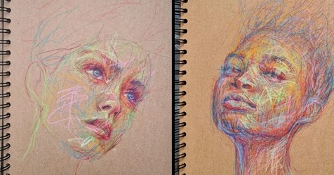 minimalista Pintar Retratos creados con lápices de colores y lápiz de color.