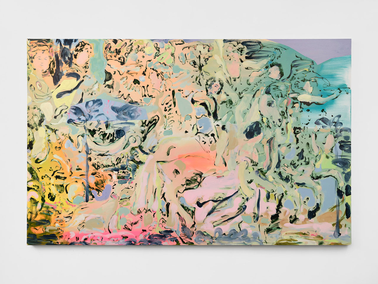 Después de descubrir en línea una pintura del artista británico Tomer Campbell hace unos años, me encontré regresando a su trabajo una y otra vez. Entonces, cuando un correo electrónico de Cob Gallery anunció la semana pasada que Campbell expondría en el Armory Show de Nueva York, mostrando una pieza titulada “ Promesa(2024)Me interesé de inmediato. Esta gran pintura al óleo combina abstracción y formas fugazmente reconocibles, en capas de vívidos tonos pastel que me dan ganas de colgarla en la pared. El estilo característico de Campbell brilla a través del movimiento dinámico y la profundidad de la pintura, invitando a infinitas interpretaciones de su ambigüedad. Con un delicado equilibrio entre caos y control, Promesa(2024) Encontrarás algo nuevo cada vez que lo veas.