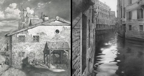 lápiz arquitectura y naturaleza dibujo. A veces en la misma imagen.