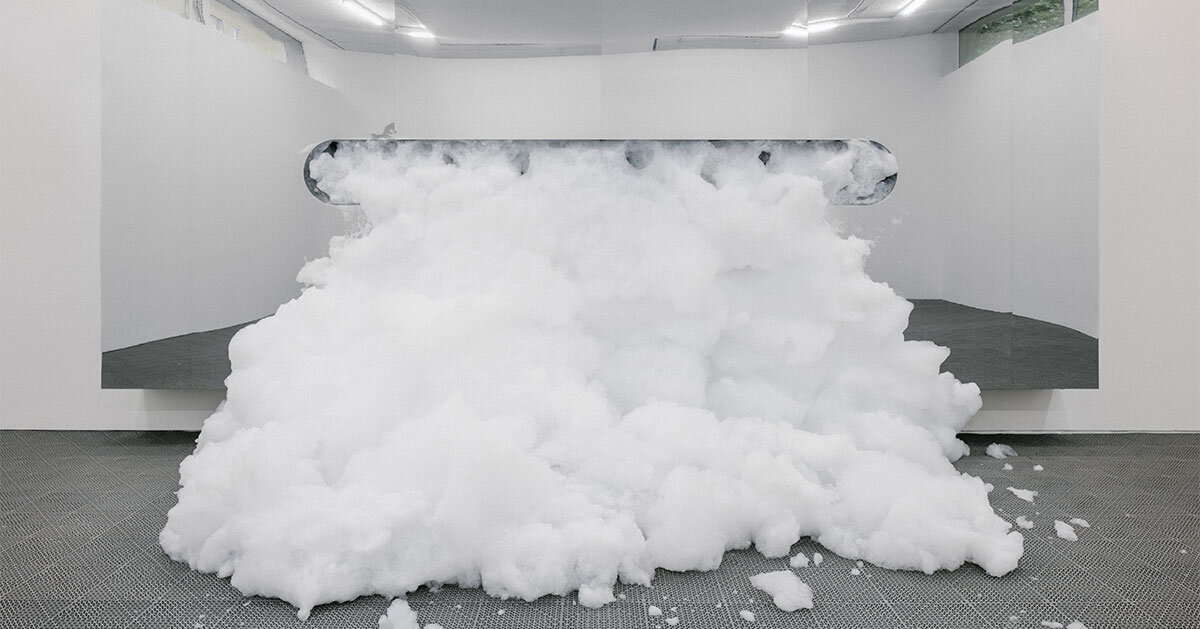 Espuma blanca envuelve la galería subterránea de la exposición de Harry Nuriev