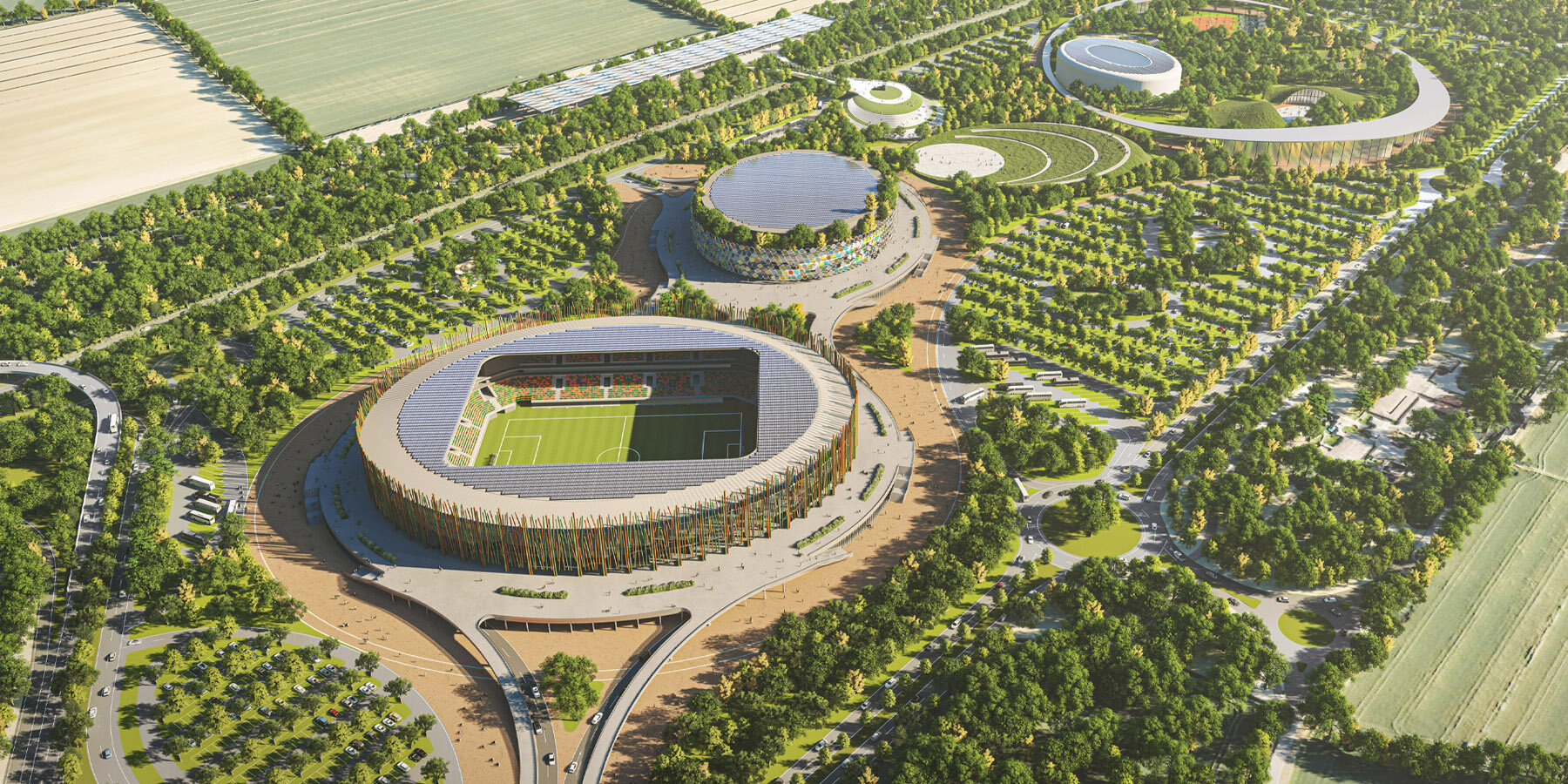 El programa se divide en siete partes. (1) Un estadio de fútbol y rugby con capacidad para 16.000 espectadores; (2) Un estadio cubierto multifuncional con capacidad para 10.000 espectadores, que puede albergar competiciones deportivas (baloncesto, voleibol, balonmano, boxeo, fútbol, tenis). conciertos y espectáculos (3) 8.000 metros cuadrados equipados con equipamiento deportivo al aire libre (fitness, skate, zona de pump track; cancha de baloncesto, cancha de voleibol, campo de fútbol); (4) 5.000 metros cuadrados dedicados a actividades y actividades al aire libre; un parque infantil equipado con equipamiento lúdico y educativo; (5) senderos y senderos para actividades no estructuradas (correr, montar en bicicleta, observación de la naturaleza, etc.) (7) un parque de educación deportiva de 6 hectáreas con centros de entrenamiento y servicios relacionados, cubiertos y al aire libre; centros de natación y arenas de playa, centro de raqueta (tenis, cricket, pickleball), canchas de fútbol sala y alojamiento para huéspedes, así como servicios para deportistas.