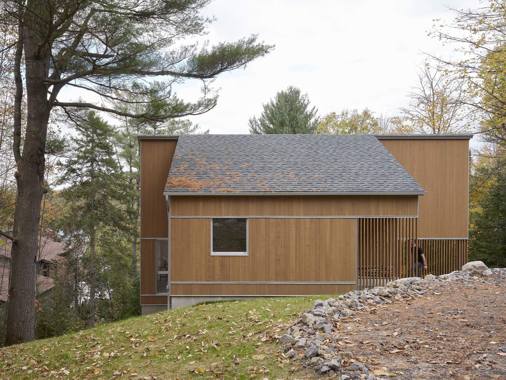 Descripción textual proporcionada por el arquitecto. en contexto – ubicado en Saint SauveurEn las Montañas Laurentinas de Canadá, una cabaña familiar construida en los años 40 estaba llegando al final de su vida útil y era hora de reemplazarla para que sus ocupantes pudieran volver a disfrutar de este encantador paisaje durante muchos años más.