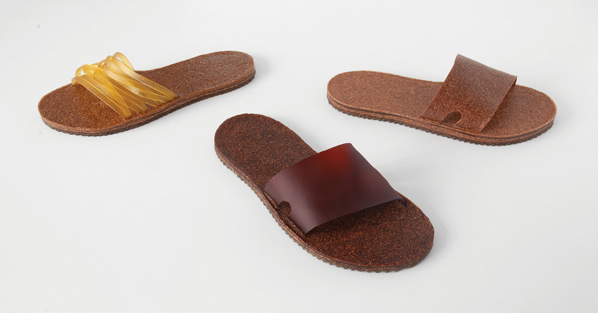 Giestas lanza Baking Vegan Slipper, una gama que permite diseño de calzadoanima a cualquiera a fabricar zapatos biodegradables en casa. Utilizando ingredientes veganos a base de algas y utensilios de cocina cotidianos, Giestas demuestra cómo los productos para el hogar pueden servir como alternativas sostenibles a los productos a base de petróleo. plástico. El diseño incluye alginato, un tipo de algasutilizado para las palas, coloreadas con azafrán o té negro, mientras que las suelas están hechas de tierra molida corcho Combinado con agar, una alternativa a la gelatina a base de algas. Los materiales reutilizados, como tapas de botellas de corcho y hojas de té usadas, demuestran el potencial de los ingredientes de calidad alimentaria para reducir la dependencia de los combustibles fósiles y permitir a los usuarios transformar sus cocinas en fábricas de calzado.