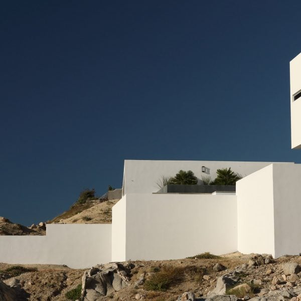 firma de diseño de vancouver estudio campos creó una escultura blanco La casa tiene una gran viga voladiza con hielo línea costera Los Sacatitos celebra el mar y el cielo de Baja California, México.