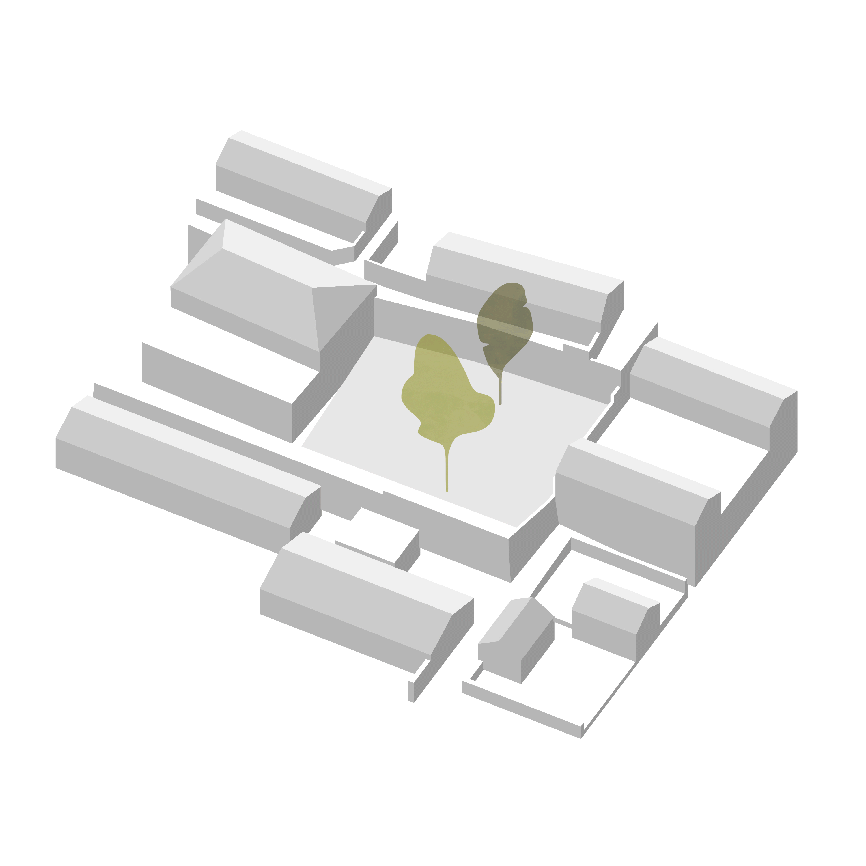 La transición del páramo al paraíso parece ser un proceso de renovación. En las pinturas de Lucas Cranach el Viejo, fuente de la juventud(1573), una elaborada cuenca hundida que simboliza la encantadora Fuente de la Juventud contrasta con el paisaje áspero y árido que la rodea y representa una época difícil para la humanidad. Este contraste se refleja metafóricamente en nuestro proceso de diseño. Con un presupuesto limitado creamos formas geométricas simples. Al igual que el lavabo cuadrado de la pintura, inyecta una sensación de nueva vida al espacio, convirtiendo un terreno baldío en un parque infantil.