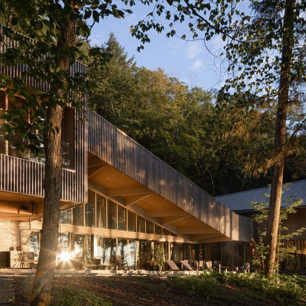 «Chalet Vale Perkins es una residencia multigeneracional junto al lago diseñada para sincronizarse con su entorno», dijo Lemay a Dezeen. “Con un espíritu de experimentación, reunimos la experiencia de Lemay en diseño interdisciplinario y sostenibilidad a través del marco Net Positive, utilizando el paisaje circundante y la arquitectura vernácula como inspiración para crear un paisaje bellamente minimalista de cuatro estaciones.