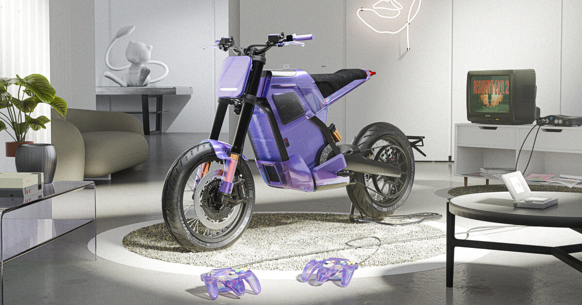 El color violeta atómico de la moto eléctrica coincide con la celebración del 135 aniversario de Nintendo