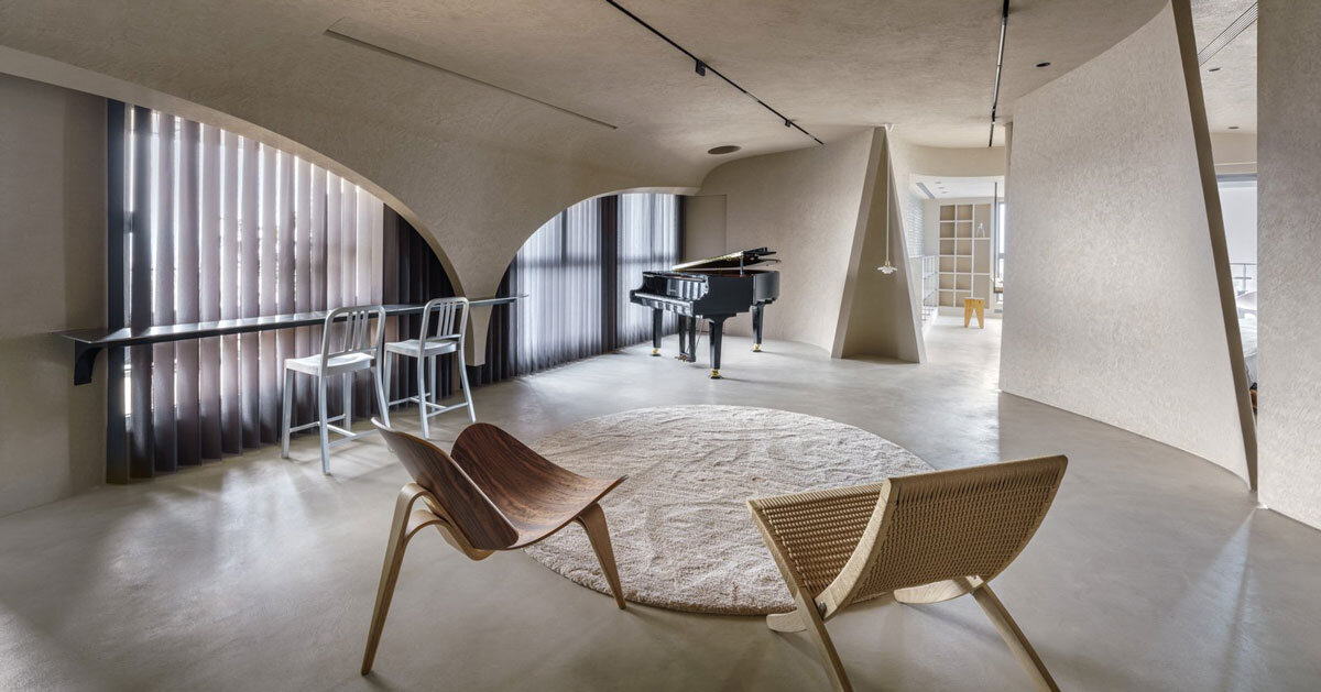 El diseño utiliza pintura mineral para resaltar los arcos y contornos de los cubículos, mejorando la sensación de flujo dentro del espacio. La interacción de luces y sombras en las paredes añade una capa dinámica al interior, enfatizando su arte y flexibilidad. Taipéi El enfoque de Studio X4 difumina los límites entre las áreas funcionales, proporcionando un entorno de vida abierto e innovador.