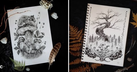 Las intrincadas ilustraciones, combinadas con la cantidad de detalles de cada imagen, realmente hacen que explorar el trabajo de Nelaluna sea un placer.
