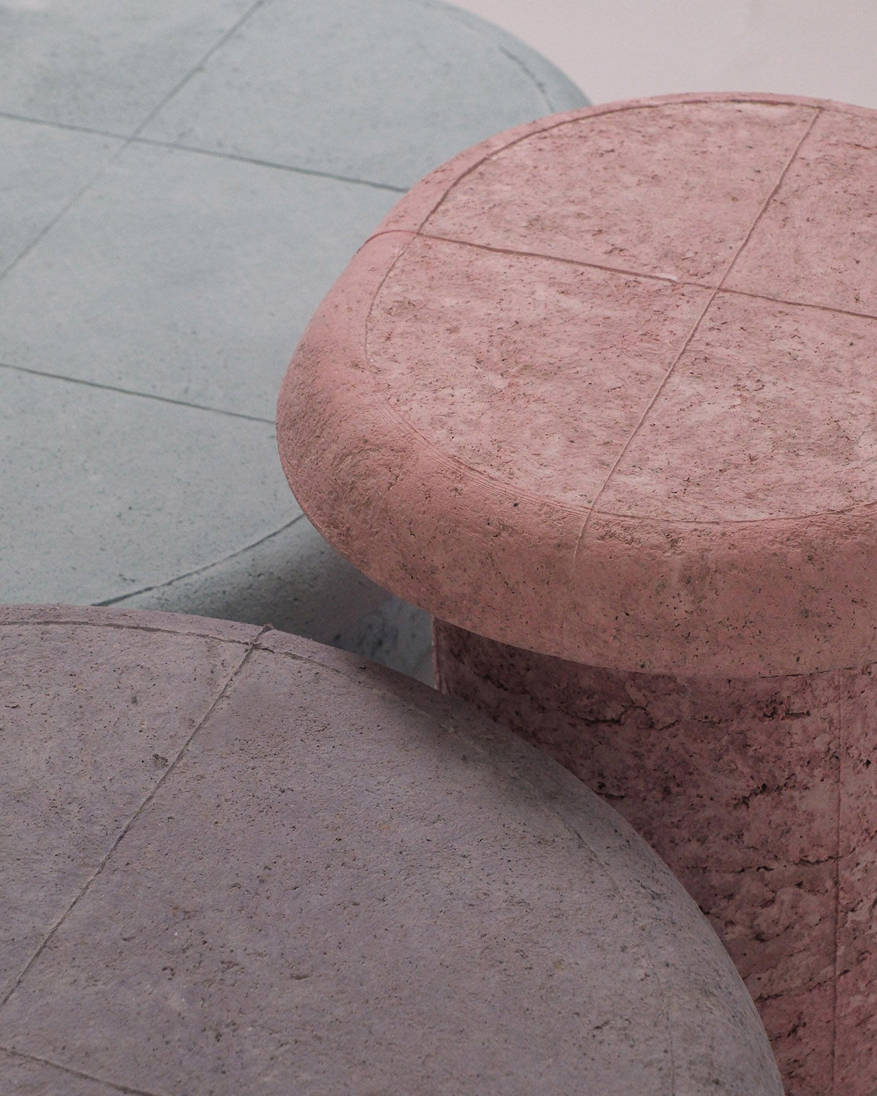 este Serie de tabletas pasar a través Emmeline Wang Combinando técnicas artesanales tradicionales con tecnología avanzada para crear un estilo brutalista de diseños encantadores. Como concreto bañado en colores dulces, estas hermosas piezas están hechas a mano mediante un proceso laborioso que utiliza pulpa de papel mezclada con materiales compuestos. Esta mezcla se apisona en varios moldes y se deja secar, creando crestas únicas según el lugar donde se unen las tablas. Esta superficie rugosa se yuxtapone elegantemente con colores pastel, creando ondulaciones orgánicas cuando los materiales se encuentran en diferentes consistencias.