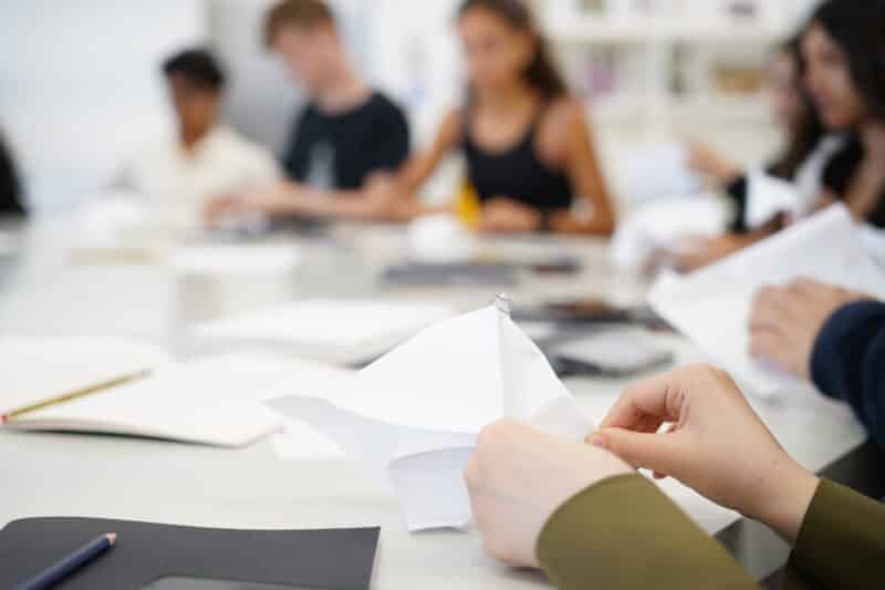 A los estudiantes se les da muy poco tiempo y recursos para traducir, lo que los anima a abandonar la escala, la viabilidad y el realismo en favor de explicaciones menos racionales y más concretas. Tuvieron diez minutos para elegir un dibujo para traducir y crear una respuesta tridimensional utilizando una hoja de papel A4 y un clip. Luego convirtieron el objeto en dos dimensiones y dedicaron varios minutos a dibujar sólo sus líneas, superficies y sombras. Finalmente, el grupo colocó sus objetos en el centro de la mesa, armó un «paisaje urbano» y combinó varias de las técnicas interpretativas y representativas que aprendieron a lo largo del día para completar el dibujo final. El taller concluyó con estudiantes y tutores alentados a seleccionar cualquier cualidad interesante de los 75 dibujos y modelos esparcidos alrededor de la mesa y discutirlos.