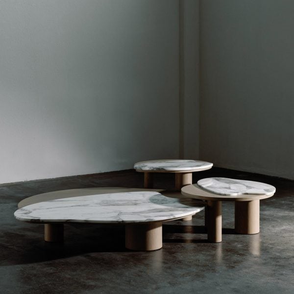 Sala de exposición Dezeen: portugués muebles marca manzana verde Intentando evocar recuerdos de la costa del Algarve con Bordeira mesa de centrodiseñado por el cofundador Rute Martins.