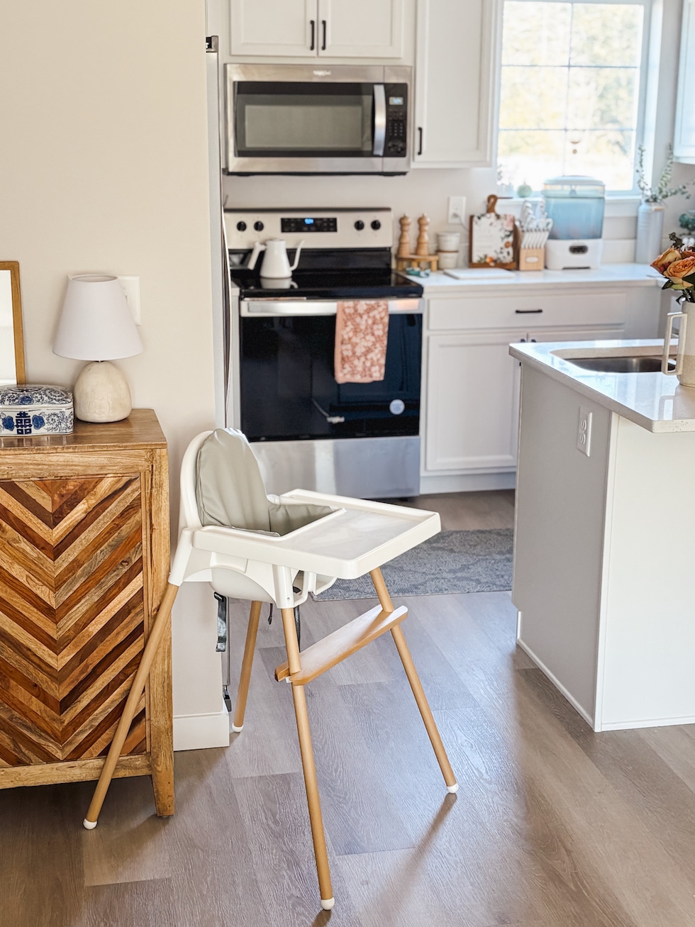 ¡Estoy tan feliz con cómo quedó este cambio de imagen! El resultado final me recuerda Esta trona popular y más cara. La versión original de IKEA era muy bonita al principio, pero me encanta que ahora es un bonito mueble que combina muy bien con el resto de nuestra decoración. ¡Me alegro mucho de haberlo hecho!