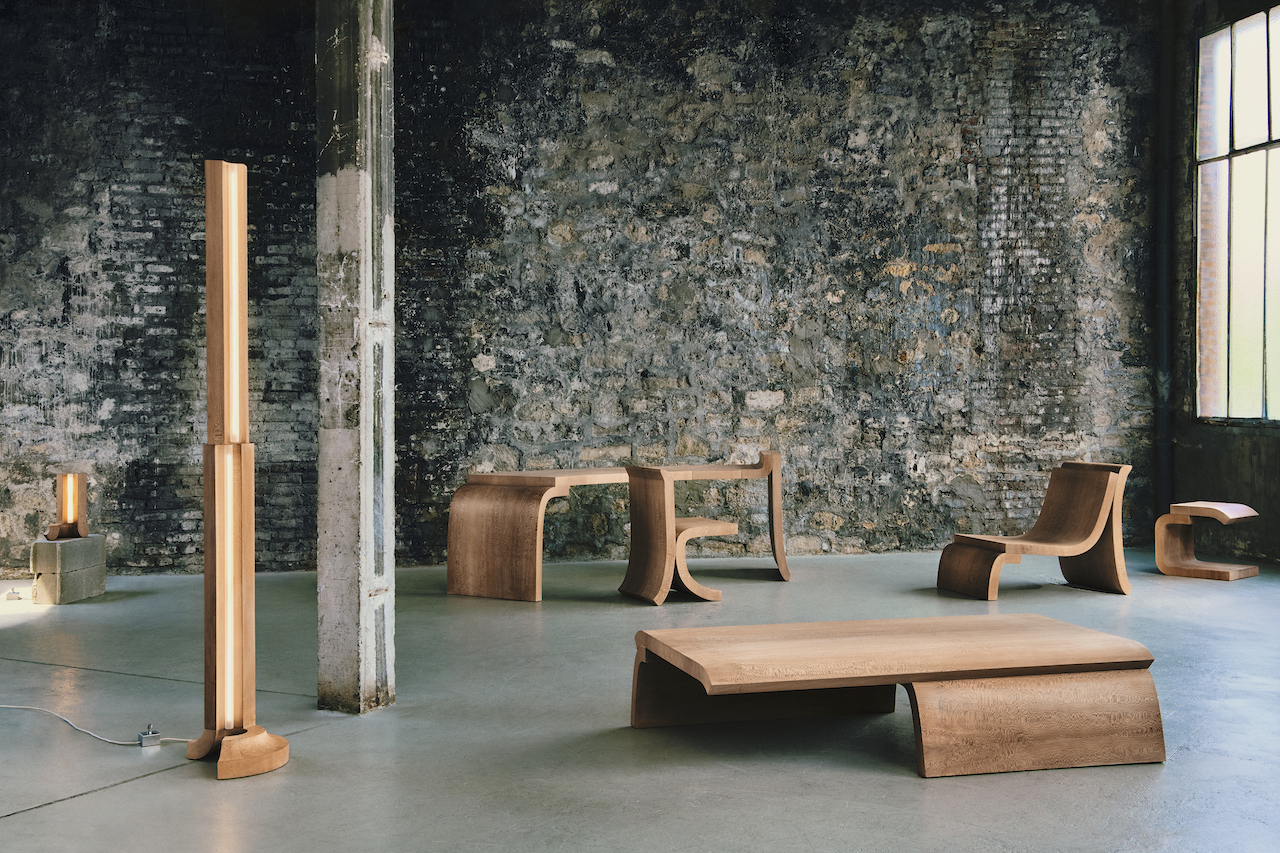 La colección es a la vez histórica y vanguardista, y se inspira sutilmente en el pasado, incluido el movimiento de elegancia sueco (que recuerda al Art Déco) y las líneas esenciales de la arquitectura antigua. Incluso hay un toque de brutalismo, en referencia a la fotografía austera y evocadora de Paul Virilio en «La arqueología del búnker». La combinación de estas influencias hace que la serie sea visualmente impactante. Cada silla, mesa y elemento de iluminación ha sido cuidadosamente diseñado para resaltar su estructura y reflejar la tensión entre materiales.